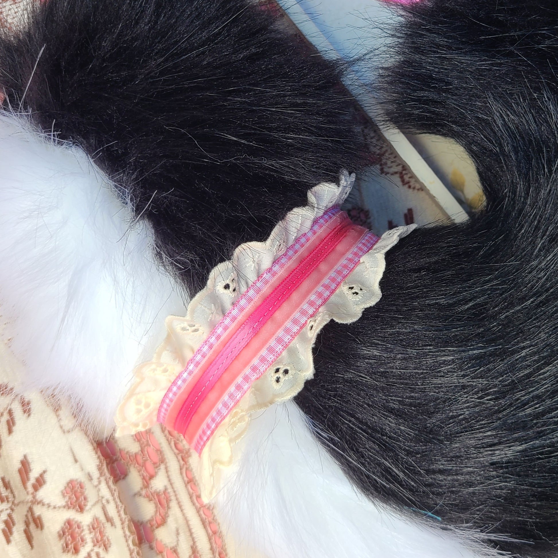 This lovingly hand crafted faux fur puppy set is hand painted and trimmed with attention to detail.